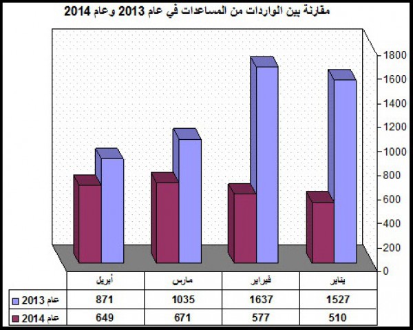 لماذا انخفضت الواردات من المساعدات في الثلث الاول من عام 2014 ؟