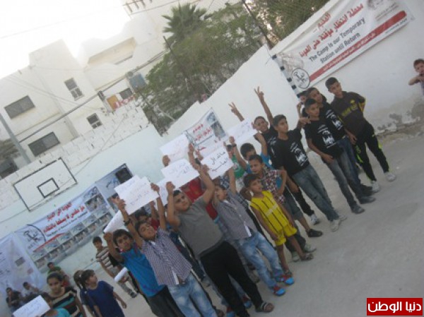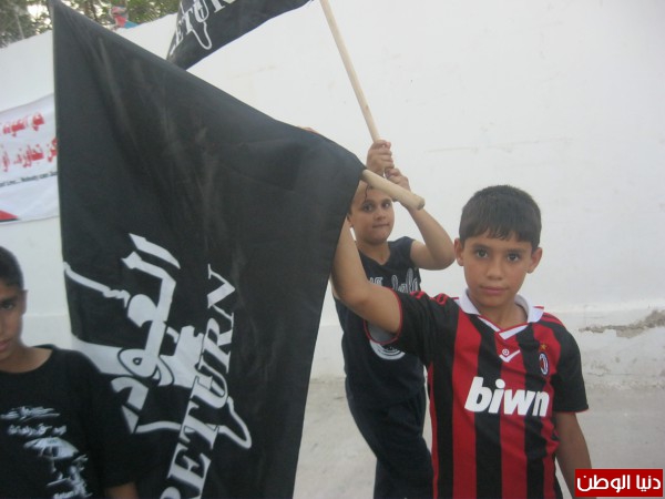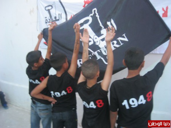 حيث رفع المشاركون الإعلام السوداء والفلسطينية وأسماء مجموعة من القرى والمدن الذي هجروا منها أهلنا قبل 66 عاما ، كما عرف مجموعة من الأطفال على قراهم ومدنهم الذي هجروا