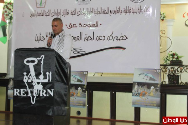 من جانبه قال رئيس اللجنة الشعبية لخدمات اللاجئين في جنين فخري الديري أن رسالتنا في هذا اليوم هي التمسك بحق العودة والالتفاف حول القيادة وحق تقرير المصير