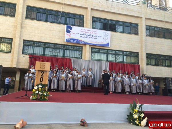 في باحة المدرسة بحضور ممثلين الأجهزة الأمنية والأب فيصل حجارين مدير المدارس في البطريركية ومدير تربية وتعليم قباطية الأستاذ محمد زكارنة والمهندس مطيع دعيبس رئيس بلدية الزبابدة وممثلي الفعاليات الرسمية المدنية والدينية وأهالي