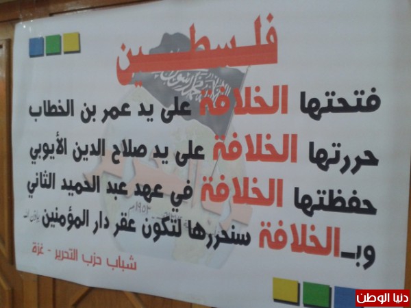 ضمن فعاليات حزب التحرير في قطاع غزة في الذكرى السنوية الـ93 لهدم الخلافة، وبمناسبة الذكرى الـ66 لقيام كيان يهود البغيض على أرض فلسطين المسلوبة، عقد شباب حزب التحرير في مدينة غزة أمس الأحد 18-05-2014م ندوة فكرية سياسية تحت عنوان: (فلسطين .. مسلسل النكبات وطريق التحرير)، وذلك في قاعة النادي الأهلي في حي الشيخ رضوان بمدينة غزة، حاضر فيها عضوا المكتب الإعلامي لحزب التحرير في الأرض المباركة فلسطين، م.ابراهيم الشريف و أ.حسن المدهون.