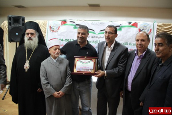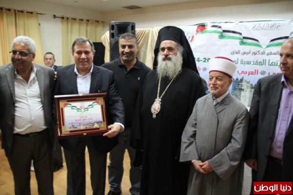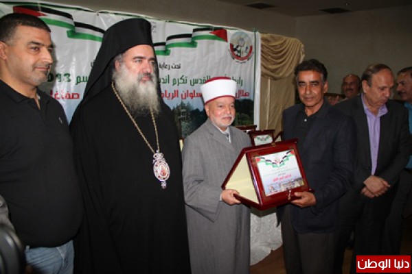 وقد حضر هذا التكريم فضيلة الشيخ محمد حسين مفتي القدس و الديار الفلسطينية ،و سيادة المطران عطاالله حنا رئيس اساقفة سبسطية للروم الارثوذكس ، معالي الوزير و محافظ القدس السيد عدنان الحسيني.