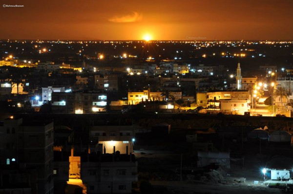 وشوهدت السنة اللهب تتصاعد وتمكن المصور محمود بسام من رصدها من مدينة رفح على الحدود مع مصر .