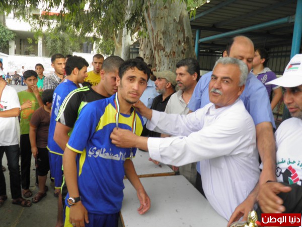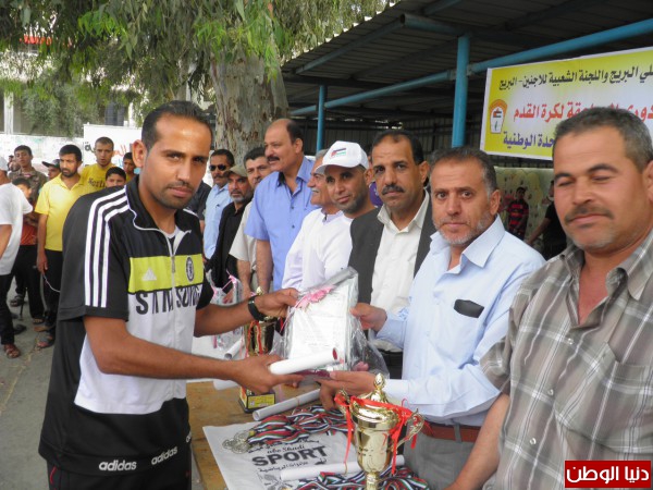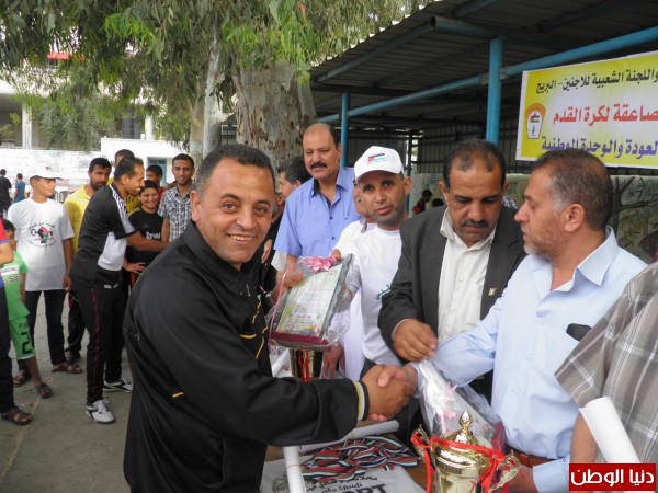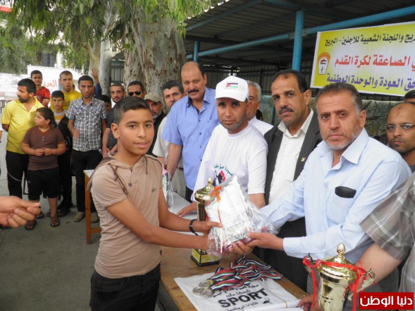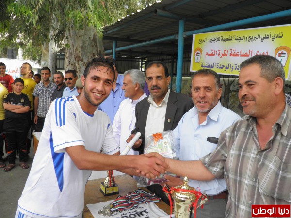 وشهد حفل التتويج وتسليم الجوائز رئيس اللجنة الشعبية للاجئين بالبريج حسن جبريل وأعضاء اللجنة ، إضافة إلي ثلة من قيادات الفصائل وكوادرها وجمع كبير من جماهير كرة القدم.