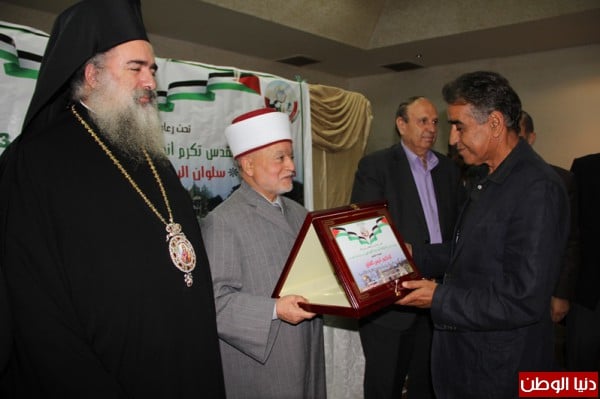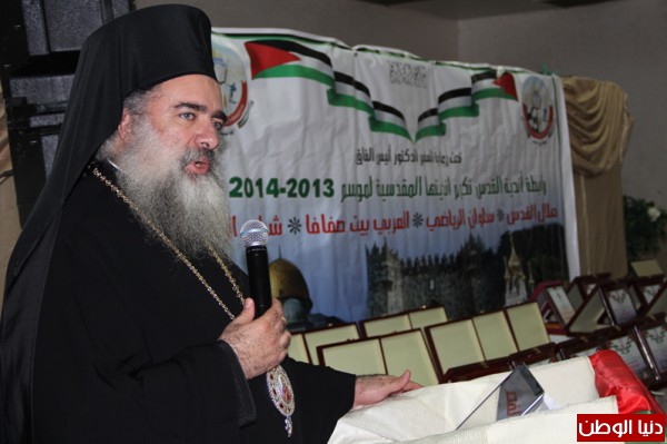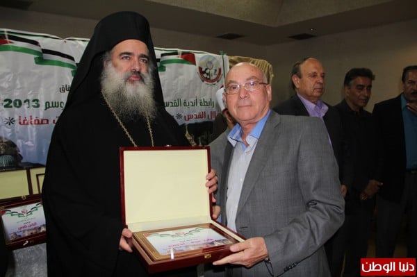اشاد نيافة المطران عطاالله حنا مطران سبسطية في كلمته بالحفل والقائمين عليه واصفا تكريم الاندية الاربعة بتكريم للقدس بحجرها وشجرها وبشرها ومساجدها وكنائسها مؤكدا في كلمته ان ما يميز القدس اللحمة الاسلامية المسيحية منذ العهدة العمرية بين الخليفة عمر بن الخطاب وصفرونيوس وان هذه اللحمة الابدية هي التي ستتكسر على صخرتها كل المؤمرات والمخططات العدوانية .