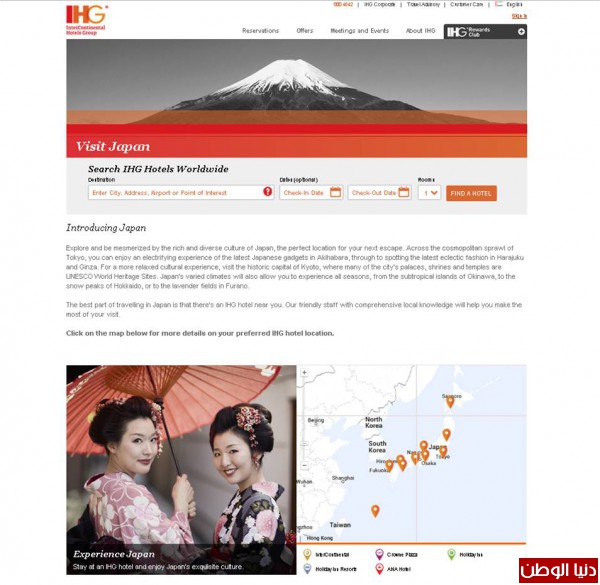 مجموعة فنادق إنتركونتيننتال تتوجه بالاهتمام لسوق اليابان من خلال إطلاق صفحة الحجوزات الجديدة عبر الانترنت