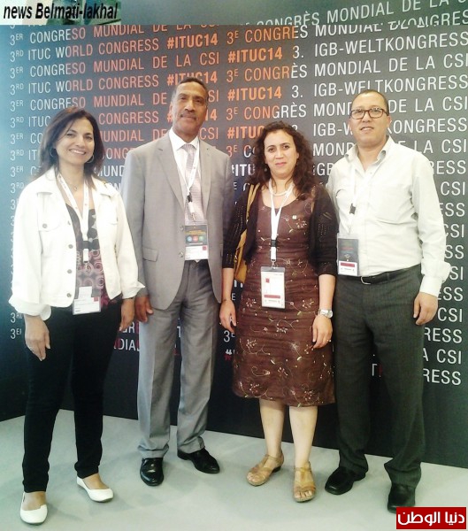 و تجدر الاشارة الى كون القضية الفلسطينية تعرف نقاشا واسعا داخل المؤتمر حيث يقوم وفد الاتحاد المغربي للشغل الى جانب باقي النقابات العربية المشاركة بمؤازرة الوفد لنقابي الفلسطيني "الاتحاد العام لنقابات عمال فلسطين" و ذالك لاستصدار توصية من المؤتمر لصالح عمال و شعب فلسطين، كما يواصل الوفد اتصالاته ومساعيه لدى رئاسة المؤتمر و لدى الوفود النقابية الاخرى من اجل التعريف بالقضية الوطنية و التاكيد على تشبت الطبقة العاملة المغربية بقيادة الاتحاد المغربي للشغل بوحدتنا الترابية.