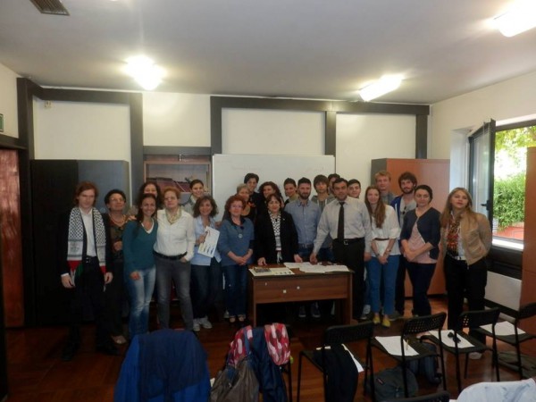 شباب فلسطينين كانو قد وصلوا مهاجرين من مخيم اليرموك وقطاع غزه وذلك مساهمة من السفارة لتسهيل اندماجهم في المجتمع الايطالي .