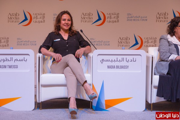 أما ناديا البلبيسي فأكدت على أن الإعلام العربي يمر بإختبار كبير في وقت تعصِف بالمنطقة تحولات كبيرة، ما يلقى بالمسؤولية على الإعلام والإعلاميين في نقل الحقيقة والتحلي بالمصداقية والمهنية لإعلام الناس الطواقين للتعرف إلى ما يدور حولهم.