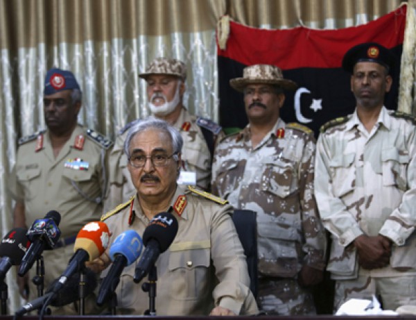 وقال حفتر الذي يقول انه يتحدث باسم الجيش الليبي، في بيان قراه ونقله العديد من قنوات التلفزيون الليبية ان “المجلس الاعلى للقوات المسلحة” يطالب المجلس الاعلى للقضاء “بتكليف مجلس اعلى لرئاسة الدولة يكون مدنيا ويكون من مهامه تكليف حكومة طوارىء والاشراف على الانتخابات البرلمانية القادمة”.