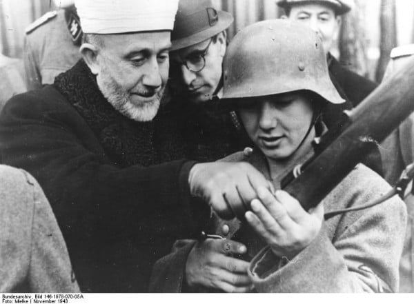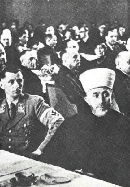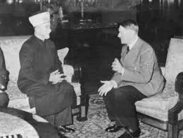 فقد وضعت صورة الزعيم النازي أدولف هتلر جنبًا إلى جنب مع صورة أحد أبرز الشخصيات الفلسطينية والقادة الإسلاميين في القرن العشرين، الحاج أمين الحسيني والملقب بـ"المفتي" (1895- 1974).