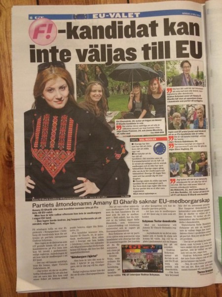 الفلسطينية والثوب الفلسطيني التقليدي ..ظهرت في شمال السويد مرتدية الزي الشعبي السويدي لتثير الجدل في معظم الجرائد والصحف المطبوعة والالكترونية هناك إن لم تكن جميع هذه الصحف..كما أن هذه الضجة الإعلامية لم تكن فقط مقتصرة على مملكة السويد بل تجاوزت كافة الحدود لتصل عدة بلدان حول العالم قام قادة فيها بالاتصال بقادة حزب الفيمنست للتساؤل عن كيفية ترشيح هذه الشابة ... كما تناولت هذه الأخبار وكالات أنباء عالمية كراديو مونتكارلو الدولي واهتمت BBC العربية بهذه الأخبار أيضاً
