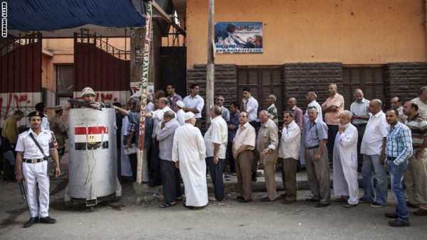 فتحت مراكز الاقتراع في مصر صباح، اليوم الاثنين، أبوابها، حيث يتوجه الناخبون إلى الصناديق للإدلاء بأصواتهم لاختيار رئيس جديد من بين المرشحين عبدالفتاح السيسي وحمدين صباحي، فيما تتجه الأنظار أولاً إلى الوضع الأمني ونسبة الإقبال.