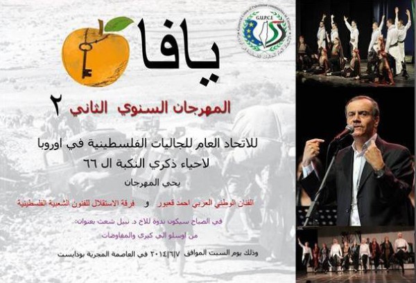 صرح رئيس الاتحاد العام للجاليات الفلسطينية في اوربا الاخ مازن الرمحي عن اكتمال كافة التحضيرات لعقد الملتقى القانوني لمساندة ودعم الاسرى في سجون الاحتلال الاسرائيلي واقامة المهرجان السنوي الثاني وذلك يومي 6 و7 يونيو / حزيران القادم ، وسيشارك العديد من الشخصيات الوطنية والعربية والدولية وشخصيات قانونية وسياسية عاملة في مجال حقوق الانسان. كما اكد رئيس الاتحاد عن مشاركة الاخ الدكتور نبيل شعت عضو اللجنة المركزية لحركة فتح. وطالب الرمحي كافة المؤسسات والهيئات والتجمعات والافراد للمشاركة في الملتقى لدعم المسيرة الوطنية والمطالبة بحقوق الاسرى والافراج عنهم .