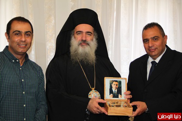 استقبل سيادة المطران عطاالله حنا رئيس اساقفة سبسطية للروم الارثوذكس اليوم السيد اديب جودة امين مفتاح كنيسة القيامة المقدسة يرافقه شقيقه السيد سري و الناشط المقدسي عادل قطينه و قد تم التأكيد في هذا اللقاء على قيم التآخي الديني الاسلامي المسيحي في القدس.