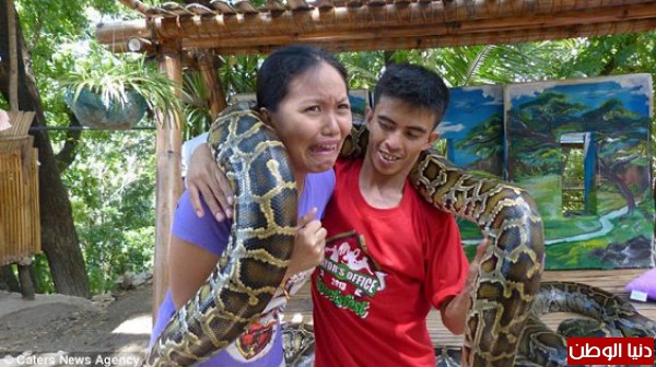 بالصور: ثعابين للتدليك والاسترخاء في الفلبين