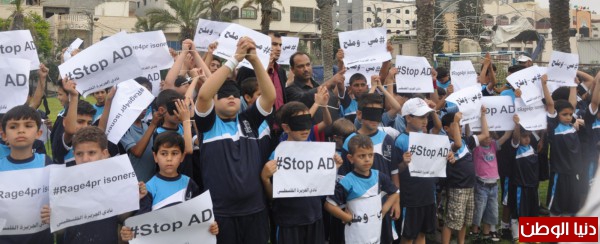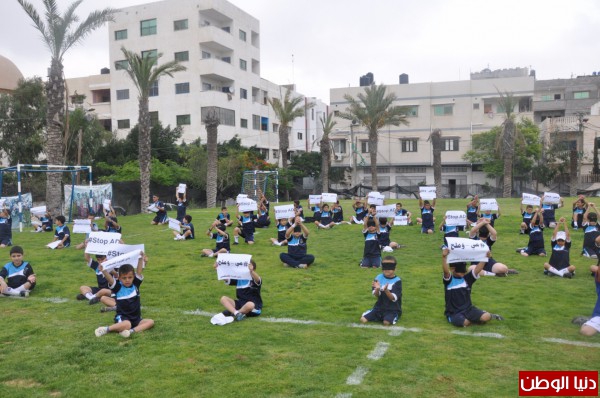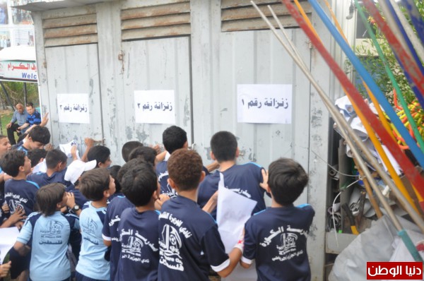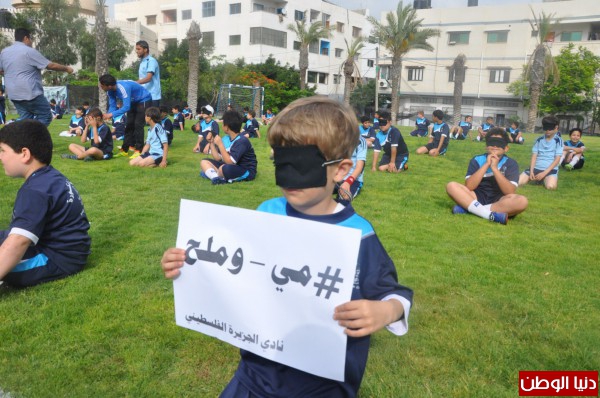 حيث قام أطفال المدرسة بتكبيل ايديهم ووضع عصبات على اعينهم، رافعين شعارات تطالب بالإفراج عن الأسرى، فيما علت هتافات بالروح بالدم نفديك يا اسير وقام الاطفال بتمثيل مشهد اطلاق سراح المعتقلين من داخل الزنازين .