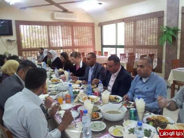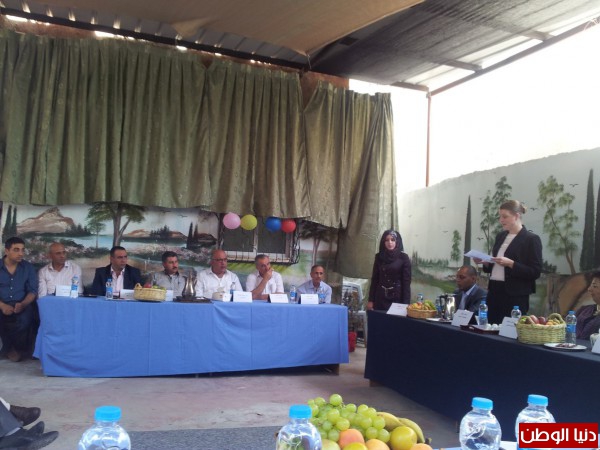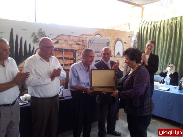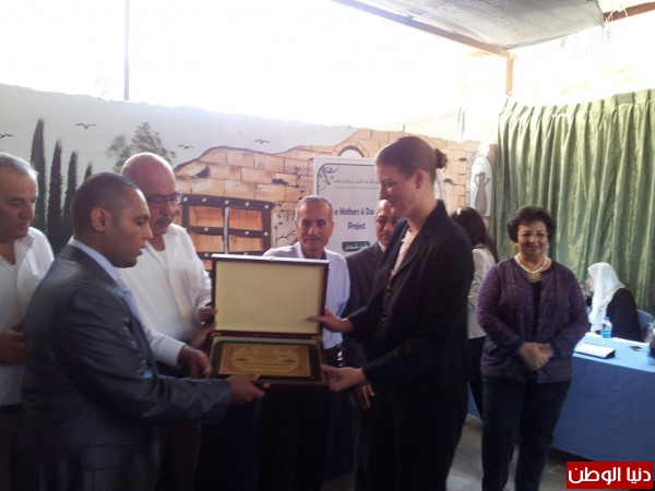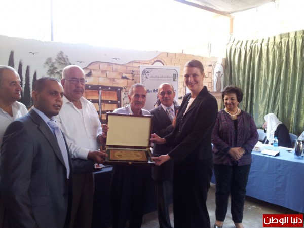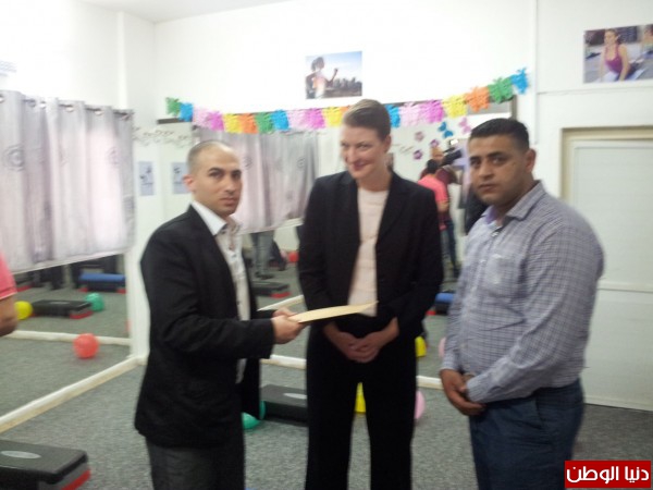 محافظ قلقيلية مروان خضر الدروع التكريمية لكل من ممثلة القنصلية الأمريكية ريتشل ليزلي وكذلك لمؤسسة جذور لتعاونهم ومساهمتهم في دعمهم النادي الرياضي ومن ثم توجه جميع
