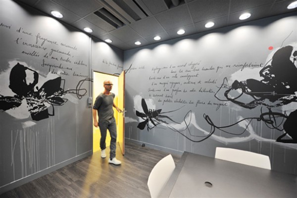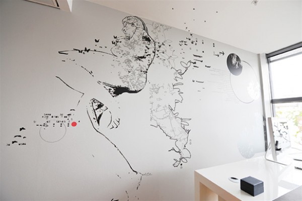 حضوره يخلو من الصعوبة، فهو تارة تكفيه زاوية وتارة أخرى ركن، وتارة ثالثة يتمدد فوق الجدار بكامله بل وفوق كل الجدران، فيحولها الى تحف فنية بعدما كانت حوامل لها. ملونة أو بالأسود والأبيض، تحمل توقيع الثنائي الشهير «ميل وكيو».
