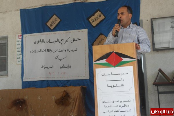 من جهته نقل النائب الفني في المديرية الأستاذ مازن جرار للحضور، تحيات مدير التربية والتعليم الأستاذ محمد زكارنة، وقال: إننا في تربية قباطية نعتز بإنجازاتنا التربوية، نعمل من أجل التقدم في كل منحى من مناحي التربية، ولا يمكن لهذه النجاحات أن تتحقق إلا بفضل جهود كل الحلقات التربوية، وفي مقدمتها المؤسسات الشريكة الداعمة، كما هنأ جرار الطالبات المتفوقات، والهيئة التدريسية والإدارية في المدرسة على جهودهن المبذولة خدمة للطالبات، ولتحقيق الأهداف المتوخاة.