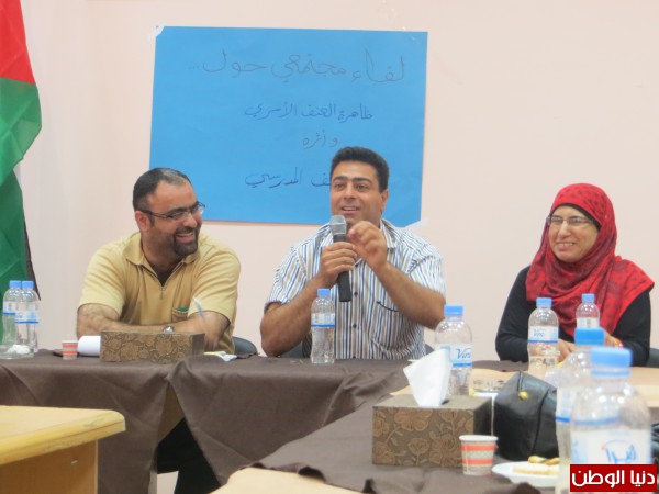 أما المقدم تيسير عزام فتطرق إلى الحالة الاجتماعية للأسرة والفرد، ودور الفقر في بعض الأحيان في خلق سلوكيات عنيفة. كما تحدث عن دور الاحتلال وممارساته في تعزيز هذه النزعة لدى الأجيال فيتولد لديهم العنف والعنف المضاد.