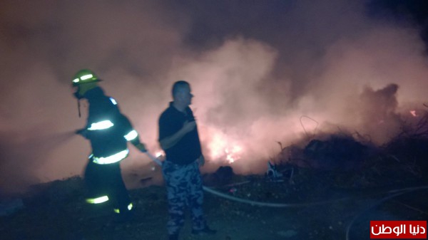 السيطرة على حريق هائل في بالات حطب وقش جنوب شرق بيت لحم