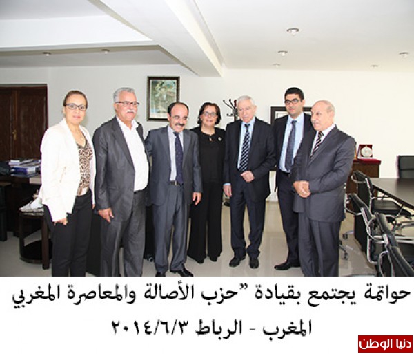 اجتمع نايف حواتمة أمين عام الجبهة الديمقراطية لتحرير فلسطين والوفد المرافق له بقيادة "حزب الأصالة والمعاصرة"؛ برئاسة د. الياس العماري نائب الأمين العام للحزب وعضوية خديجة ارديس عضو المكتب السياسي والنائب في البرلمان المغربي؛ وسهيلة مسؤولة الاعلام والاتصال في الحزب، والمهدي بن سعيد رئيس لجنة الخارجية في البرلمان.
