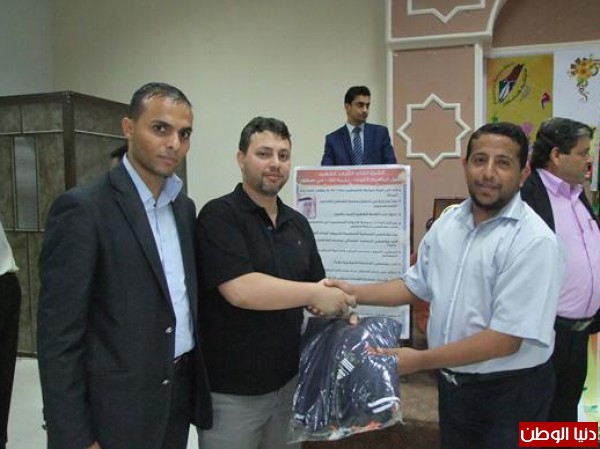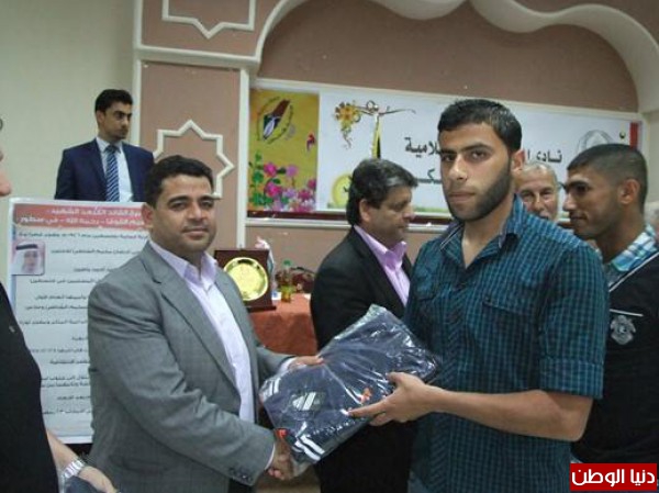 وفي ختام الاحتفال قام الضيوف بمنح البطل والوصيف الجوائز والهدايا, ومنح الدروع التذكارية, كما قام هنية بإطلاق اسم الشهيد القوقا على مسبح النادي النصف أولمبي.
