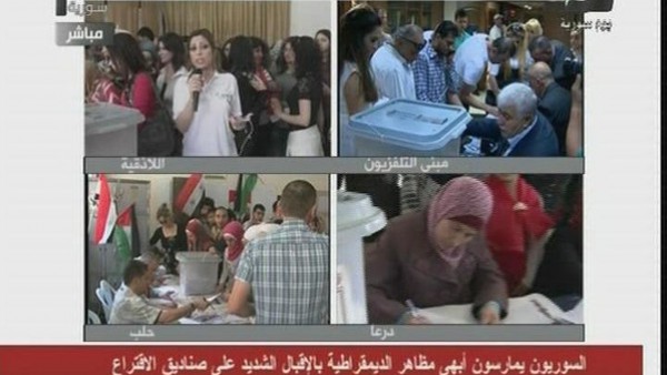 كشف مقطع فيديو على شبكة الإنترنت، مراسلة التلفزيون السوري وهي تلقن الناخبين ما يجب أن يقولوه عن مدح الانتخابات السورية.