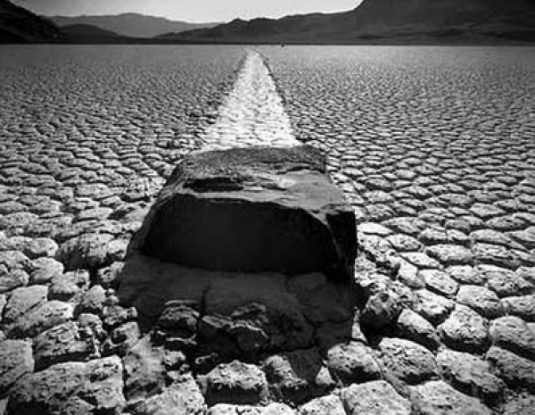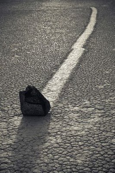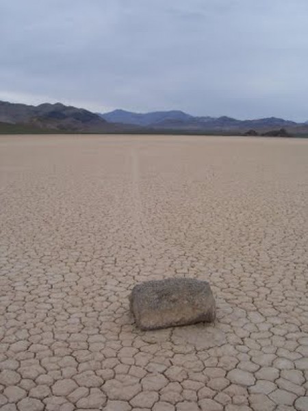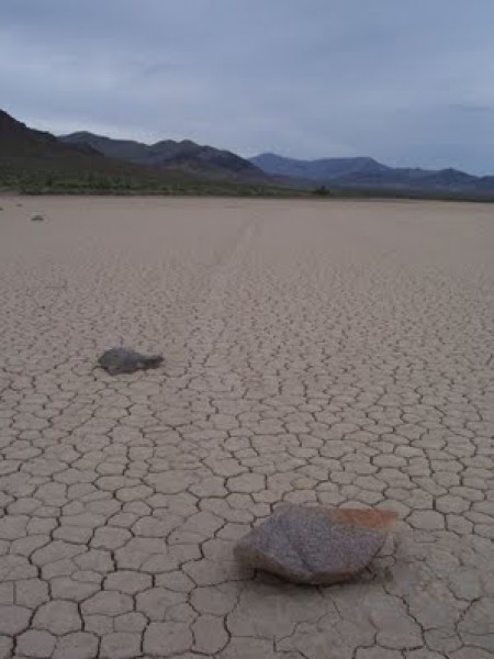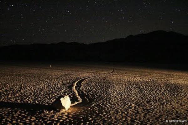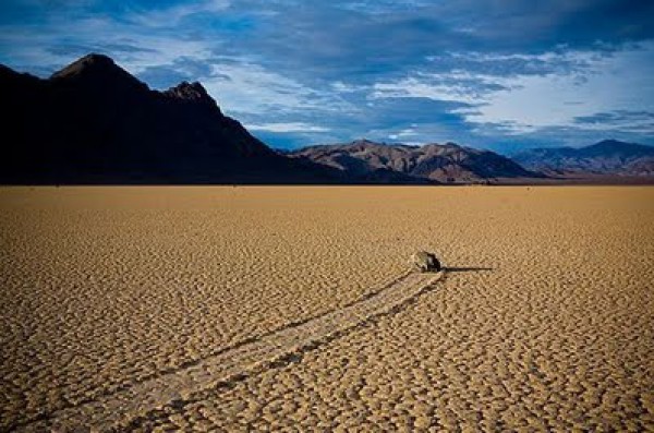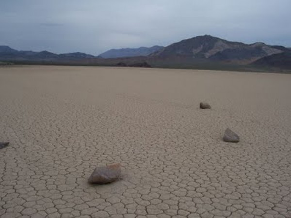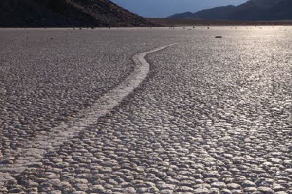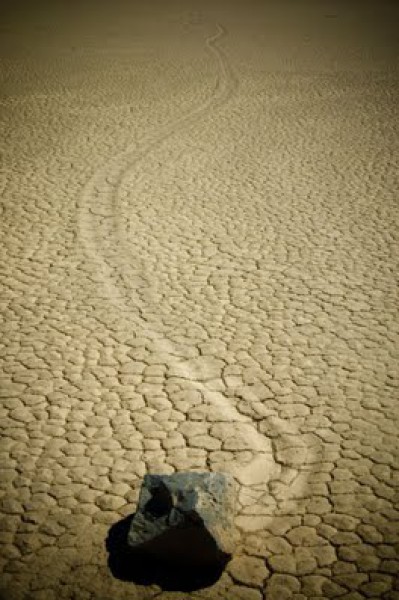 يتابع العلماء ظاهر غريبة تحدث للصخور التي توضع في الاماكن المفتوحة و المستوية حيث تتحرك تلك الصخور بمسارات يمكن ملاحطتها من الخلال الاثر التي تتركه خلفها بالصور و على الرغم ان حركتها بطيئة جدا اذ تصنع هذا المسار القصير على مدى ثلاث سنوات تقريبا و مما لوحظ ايضا ان الصخور التي لها قاعدة ملساء تتحرك بمسار منحني و غير مستقيم عكس الصخور غير الملساء فتتحرك بخط مستقيم و كذلك لوحظ ايضا ان الصخور التي تكون متقاربة تتحرك بخطوط متوازية مع بعضها.