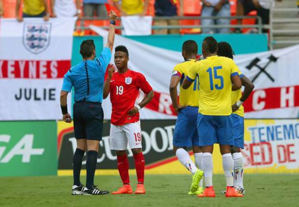 قرر الاتحاد الدولي لكرة القدم «فيفا» اعتماد البطاقة الحمراء التي تعرض لها لاعب وسط ليفربول «رحيم سترلينج» في مباراة منتخب بلاده الإنجليزي الودية أمام نظيره الإكوادوري ليلة أمس بإيقافه لمباراة دولية.