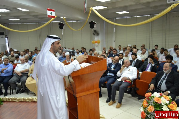 كلمة القائم بالاعمال أكد خلالها على العلاقة المتينة بين الامارات ولبنان في مجالات التعليم والصحة والخدمات، كما أكد على حرص دولة الامارات العربية المتحدة بشخص رئيسها الشيخ خليفة بن زايد آل نهيان على تقديم الدعم للبنان والوقوف معه في أحلك الظروف. كما هنأ الجنيبي الطلاب الجريجين وإدارة المركز متمنيا مزيدا من التقدم.