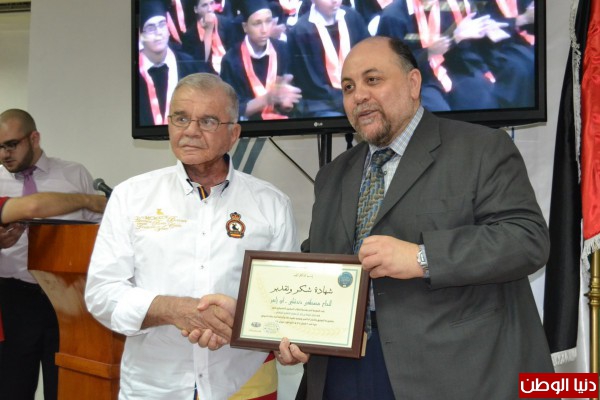 ثم قدم الدكتور عبد الحليم زيدان شهادة شكر وتقدير للسيد مصطفى دندشلي على المكرمة التي يقدمها لطلاب المركز سنوياً، كما قدم زيدان شهادة شكر وتقدير لمنتدى الأعمال اللبناني الفلسطيني بشخص رئيسه طارق عكاوي على المكرمة التي يقدموها للطلاب الفلسطنيين في المركز.