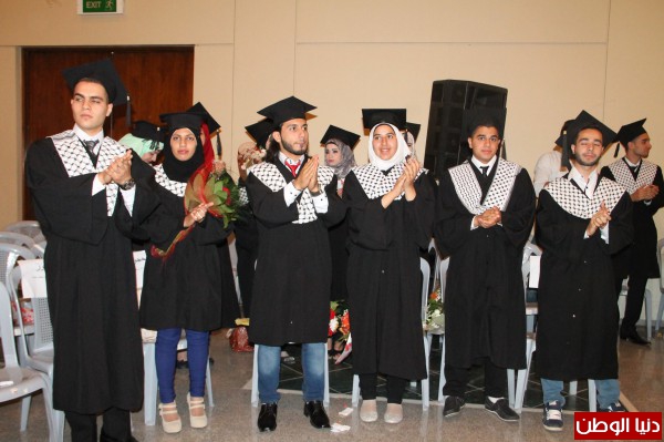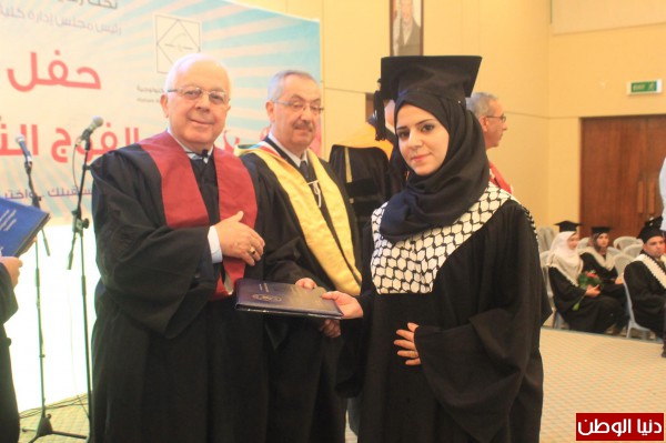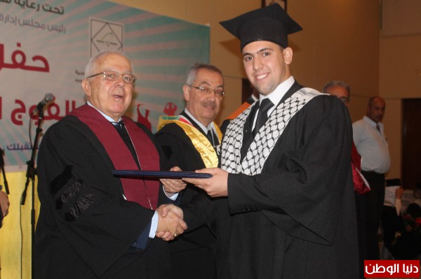 وفي ختام الحفل قدم الدكتور زعيتر والدكتور النتشة والدكتور ميالة والدكتور المصري الشهادات للطلبة الخريجين.