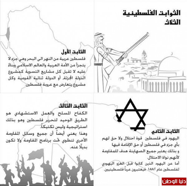 تحرر إلا بالكفاح المسلح، وأن اليهود الذين جاؤوا إلى فلسطين بعد بدء الغزو الصهيوني لا يعتبرون فلسطينيين.