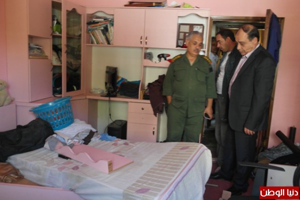 تفقد محافظ جنين اللواء إبراهيم رمضان ، صباح اليوم، عدد من منازل المواطنين التي اقتحمها جيش الاحتلال فجر اليوم في مدينة جنين . ورافق رمضان في جولته قائد المنطقة العقيد ركن محمد حسين وعدد من الضباط في قيادة المنطقة و كمال ابو الرب مساعد المحافظ و كادر المحافظة . وشملت الجولة منزل المواطن احمد عورتاني في ضاحية صباح الخير و منزل الشهيد محمد عوني أبو أعليا في الحي الشرقي .