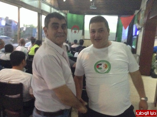 في إطار فعاليات جمعية الصداقة و الأخوة الفلسطينية الجزائرية لمساندة فريقنا الوطني الجزائري في فلسطين و تنفيذا لمشروع المساندة الذي أطلقته الجمعية من خلال عدة فعاليات تحت شعار "عاشت الأخوة الفلسطينية الجزائرية " من توزيع أعلام الجزائر الشقيق في مختلف المحافظات من القدس إلى رام الله و غزة و جنين و غيرها من المدن و تيشيرتات تحمل علم الجزائر و فلسطين .