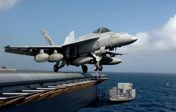 القاذفات الامريكية المقاتلة إف/إيه-18 هورنت لقصف مواقع الدولة الاسلامية في العراق وسوريا