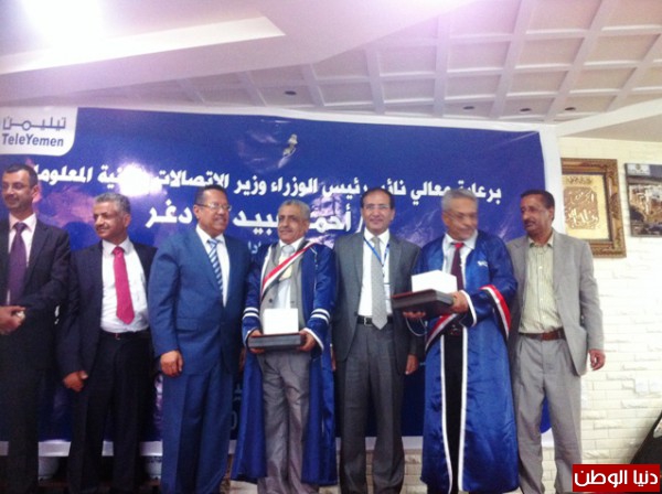 عقب ذلك قام نائب رئيس الوزراء ومعه وكيل وزارة الاتصالات عبد اللطيف ابو غانم ومدير عام المؤسسة العامة للاتصالات المهندس صادق مصلح والرئيس التنفيذي لشركة الاتصالات الدولية تليمن بتوزيع الشهادات التقديرية والعينية على المكرمين.
