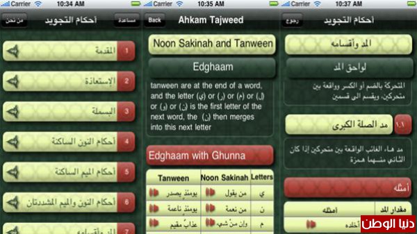 تعلم التجويد باللغة العربية والإنكليزية على آيفون