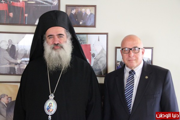 التقى المطران عطاالله حنا رئيس اساقفة سبسطية للروم الارثوذكس مع الدكتور راتب ربيع رئيس المؤسسة المسيحية المسكونية في مدينة بيت لحم.