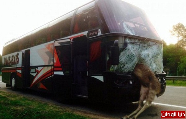 رأس "غزال مخمور" يخترق زجاج حافلة