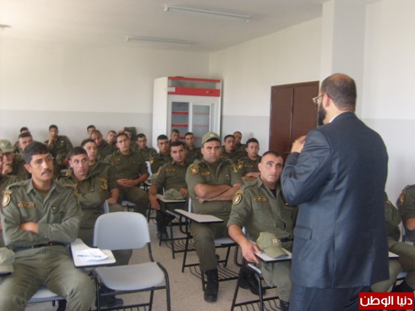 بتعليمات وتوجيهات قائد منطقة جنين وطوباس عقيد ركن محمد ابو هيفاء نظم مكتب العلاقات العامة في قوات الأمن الوطني بالتعاون مع مدير قسم الإرشاد الديني الرائد/ عبد الله القرم والتنسيق مع الدكتور مدين القرم محاضرة حول الإخلاص في العمل ألقى خلالها الدكتور مدين القرم المحاضر في جامعة النجاح وجامعة القدس المفتوحة محاضرة لقوات الأمن الوطني في معسكر حرش السعادة بعنوان الإخلاص والأمانة والصدق في العمل.