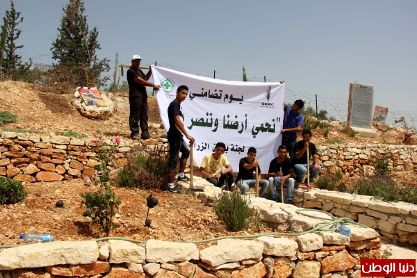نظم اتحاد لجان العمل الزراعي يوم عمل تطوعي في قرية بلعين غربي محافظة رام الله ضمن حملة تضامنية أطلقها "العمل الزراعي" في محافظات الضفة تحت شعار "نحمي أرضنا وننصر فلاحينا" تهدف الى تعزيز قيم العمل الطوعي في فلسطين ودعم صمود ومناصرة حقوق المزارعين.