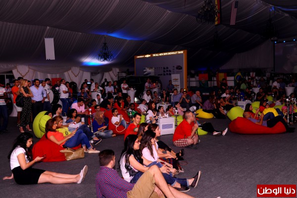وقد شهدت الخيمة أجواء حماسية كبيرة أثناء عرض المباريات بأوقاتها المختلفة، وتنوعت ردود فعل الجمهور بالتصفيق والتأثر والتماوج على أنغام طبول التشجيع والصفّارات والتلويح بأعلام الدول المشاركة في المونديال.