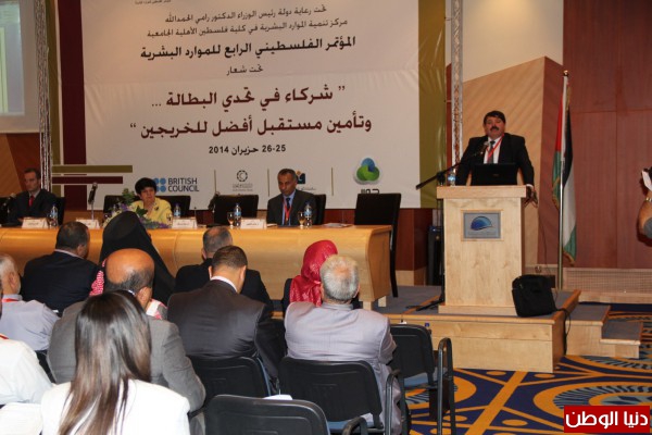 أطلقت كلية فلسطين الأهلية الجامعية في بيت لحم فعاليات المؤتمر الفلسطيني الرابع للموارد البشرية تحت شعار" شركاء في تحدي البطالة وتأمين مستقبل أفضل للخريجين"، وذلك تحت رعاية دولة رئيس الوزراء الدكتور رامي الحمدالله وبالشراكة مع المجلس الثقافي البريطاني و وزارة العمل الفلسطينية، وبرعاية ماسية من شركة الاتصالات الخلوية الفلسطينية جوال وشركة باديكو القابضة والبنك الإسلامي العربي، وبحضور معالي وزيرة التربية والتعليم العالي الأستاذة الدكتورة خولة الشخشير ومستشار الرئيس للشؤون العلمية والتكنولوجية الدكتور صبري صيدم ورئيس ديوان الموظفين معالي السيد موسى أبو زيد و وكيل وزارة العمل الأستاذ ناصر قطامي ورئيس مجلس أمناء كلية فلسطين الأهلية الجامعية الأستاذ داوود الزير ورئيس الكلية الأستاذ الدكتور غسان أبو حجلة ورئيس المؤتمر الدكتور ياسر شاهين ورئيس جامعة فلسطين التقنية " خضوري" الدكتور مروان عورتاني بالإضافة إلى رئيس أساقفة سبسطية للروم الأرثوذكس سيادة المطران عطالله حنا ومفتي محافظة بيت لحم سماحة الشيخ عبد المجيد عطا و ممثلين عن الشركات الراعية مدير منطقة الجنوب في شركة جوال الأستاذ محمد زلوم ومدير البنك الإسلامي العربي السيد موسى شحادة والسيدة رشا متولي ممثلة عن شركة باديكو القابضة والعديد من الشخصيات الاعتبارية ومدراء وممثلي المؤسسات الحكومية والخاصة والبلديات والجامعات والأجهزة الأمنية ومؤسسات المجتمع المدني والمؤسسات الدولية.