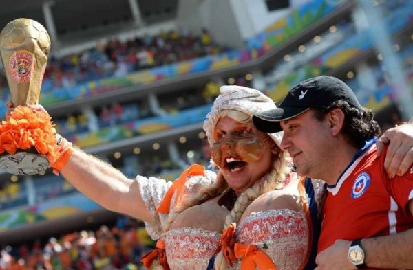 واختار البعض رسم الأعلام ولجأ آخرون لارتداء الريش أو التنكر بأزياء خيالية، كما اعتبر الأجرأ بين المشجعين أن العري هو أفضل الطرق لتشجيع اللاعبين في مباريات كأس العالم المستمر حتى تاريخ 13 تموز/يوليو المقبل.