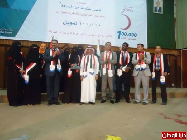 اقام بنك الامل اليوم الأثنين بصنعاء احتفالية خاصة بمناسبة الوصول الى 100 الف تمويل وذلك تحت شعار "خمس سنوات من الريادة" .