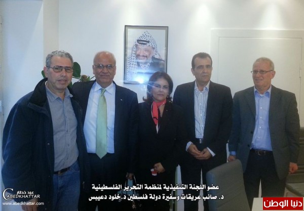 التقي كبير المفاوضين الفلسطينيين صائب عريقات وفد من ممثلي لجنة العمل الوطني الفلسطيني في مقر السفارة في برلين بحضور سفيرة فلسطين د.خلود دعيبس تم فيه بحث اخر الاوضاع والتطورات والمستجدات على الساحة الفلسطينية والدولية وخاصة الوضع الفلسطيني في داخل الاراضي المحتلة والممارسات الاسرائيلية بحق ابناء شعبنا الفلسطيني التي تتخذ من اختفاء ثلاثة مستوطنين إسرائيليين ذرائع لدفع الأمور باتجاه العنف والدمار والفوضى والتطرف وإراقة الدماء .