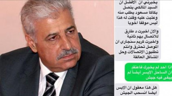 وزاد "أثناء زيارتنا إلى قيادة العمليات سأل أحد (أعضاء) الوفد المرافق لي القادة العسكريين.. هل أبلغتم المالكي بالحاجة إلى دعم البيشمركة؟ فأجابوا لا طبعاً إذا قلنا له ذلك فسيقوم بنزع رتبنا".